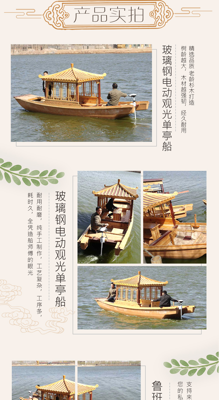 下一篇: 4.8米木船画舫船小型实木质仿古电动船公园景区水上手划观光旅游餐饮船