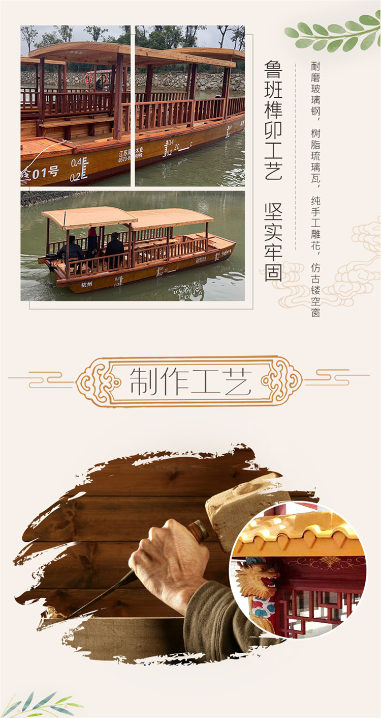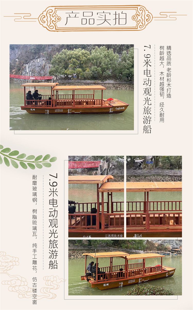 上一篇: 4.8米木船画舫船小型实木质仿古电动船公园景区水上手划观光旅游餐饮船